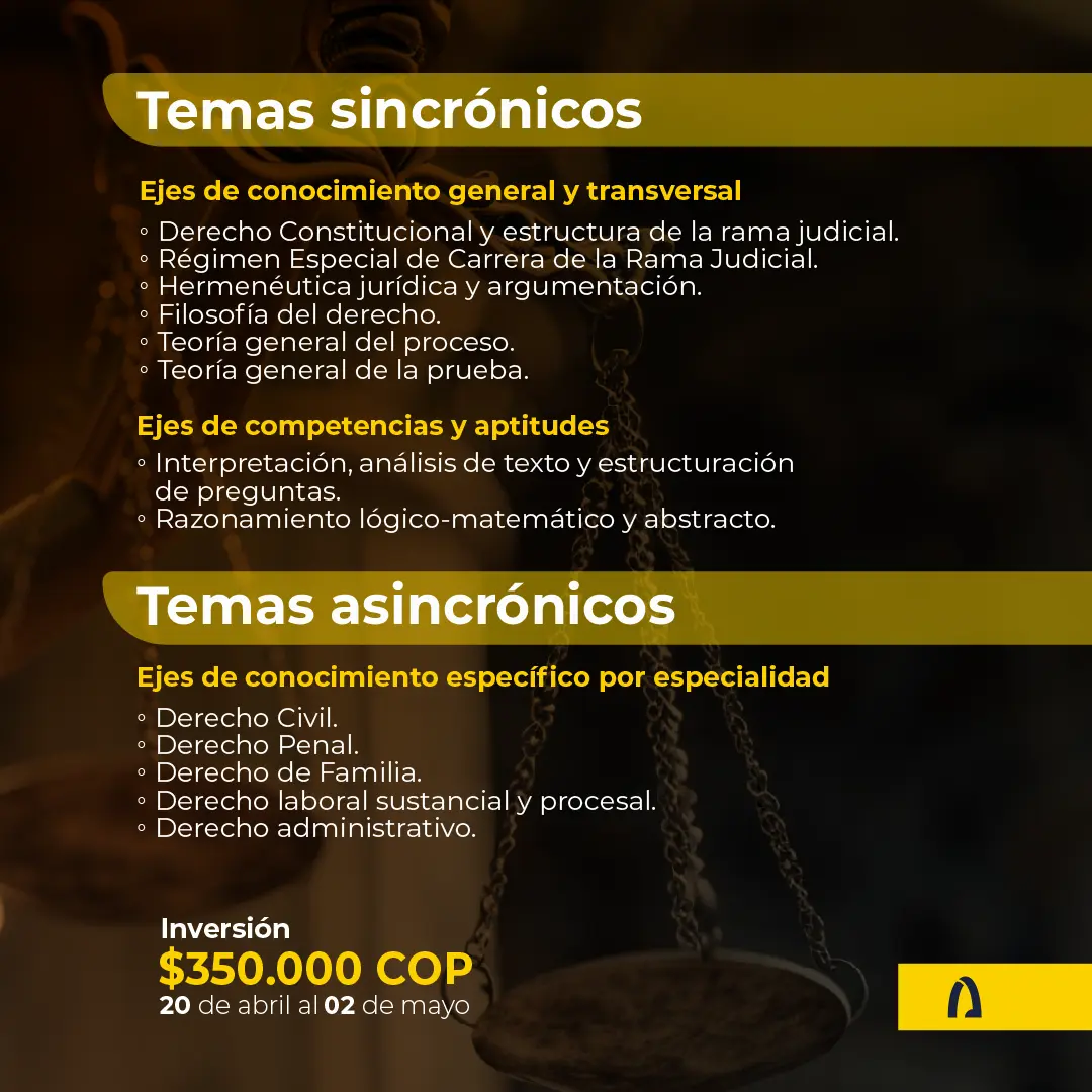 Clases dictadas por especialistas con amplia trayectoria en la formación de la Rama Judicial.